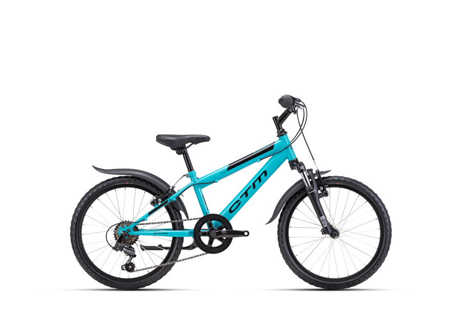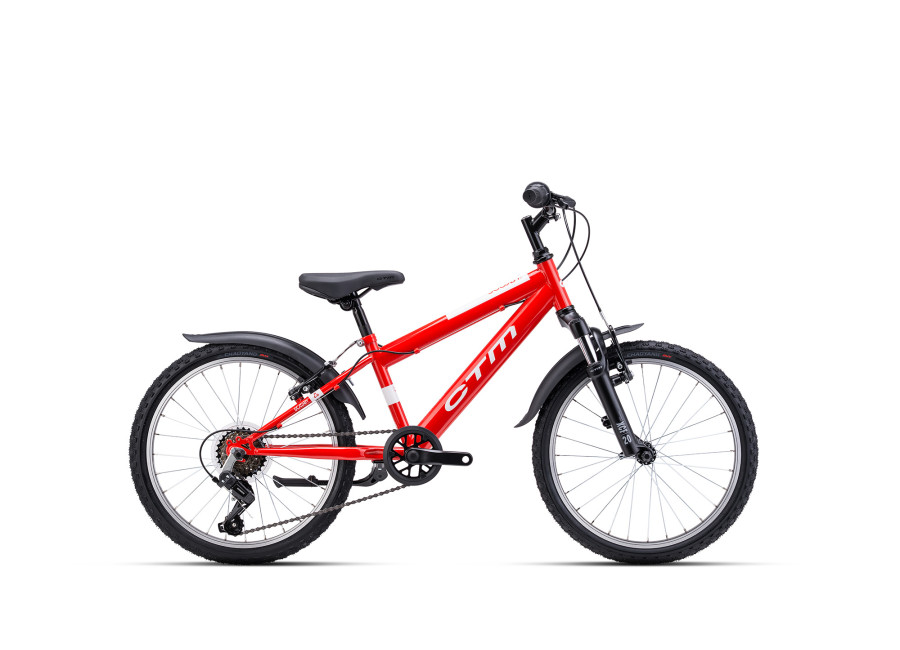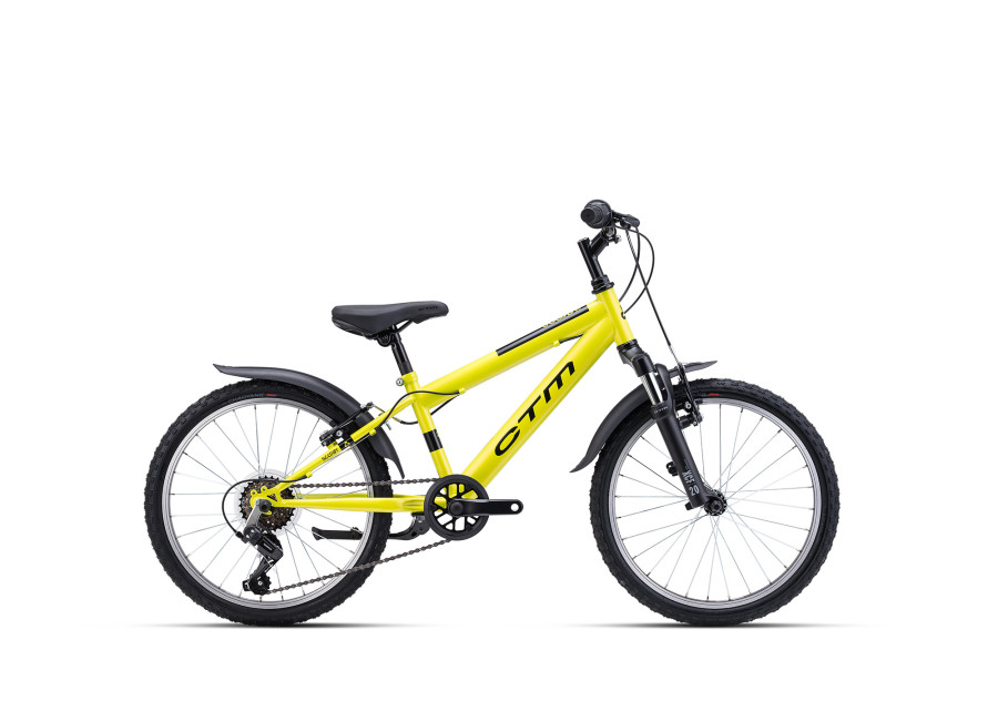 20" detský UNI bicykel s 11" Hi-Ten rámom a s odpruženou prednou vidlicou (vhodný pre deti vo veku 5-9 rokov) . Bicykel vybavený  SHIMANO TOURNEY s radením REVOSHIFT (6 prevodov), V-Brake brzdami, spevnenými AL ráfikmi a stojanom.